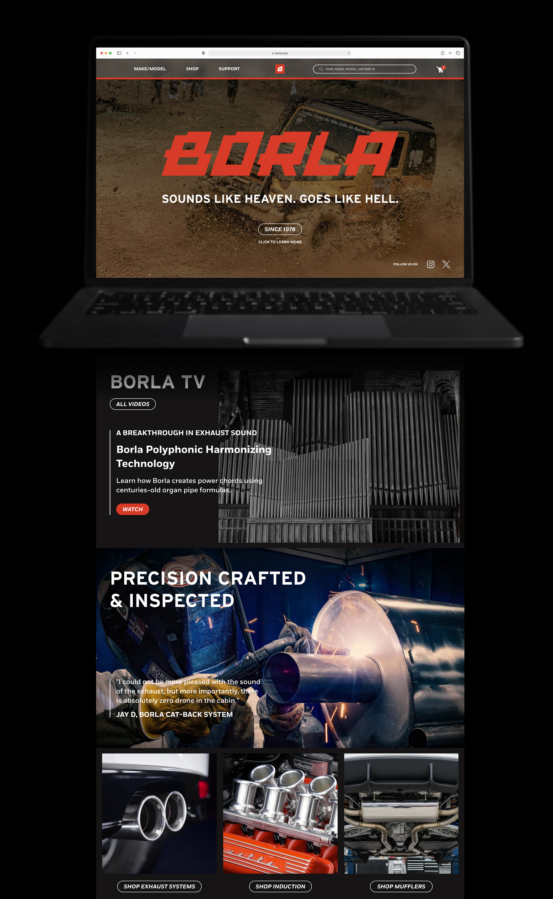 Students were asked to create a medium-scale campaign focusing on a brand of a smaller audience. I chose Borla, an American custom exhaust manufacturer with a rich heritage.