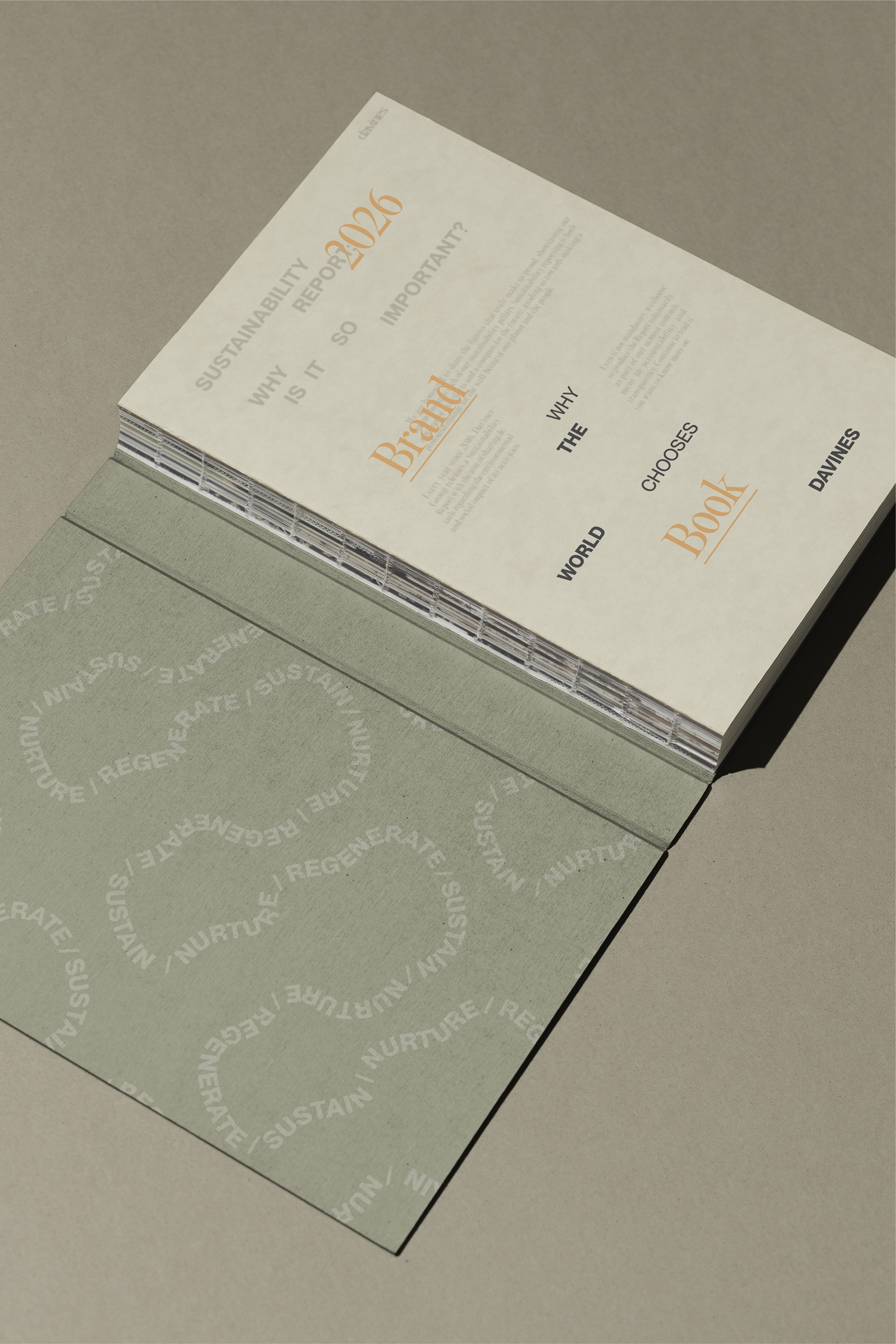 A custom typeface was developed for the Davines word mark. The combined anatomy of a humanist serif with a transitional sans serif reenforces Davines' position on the forefront of both humanitarianism & scientific research.