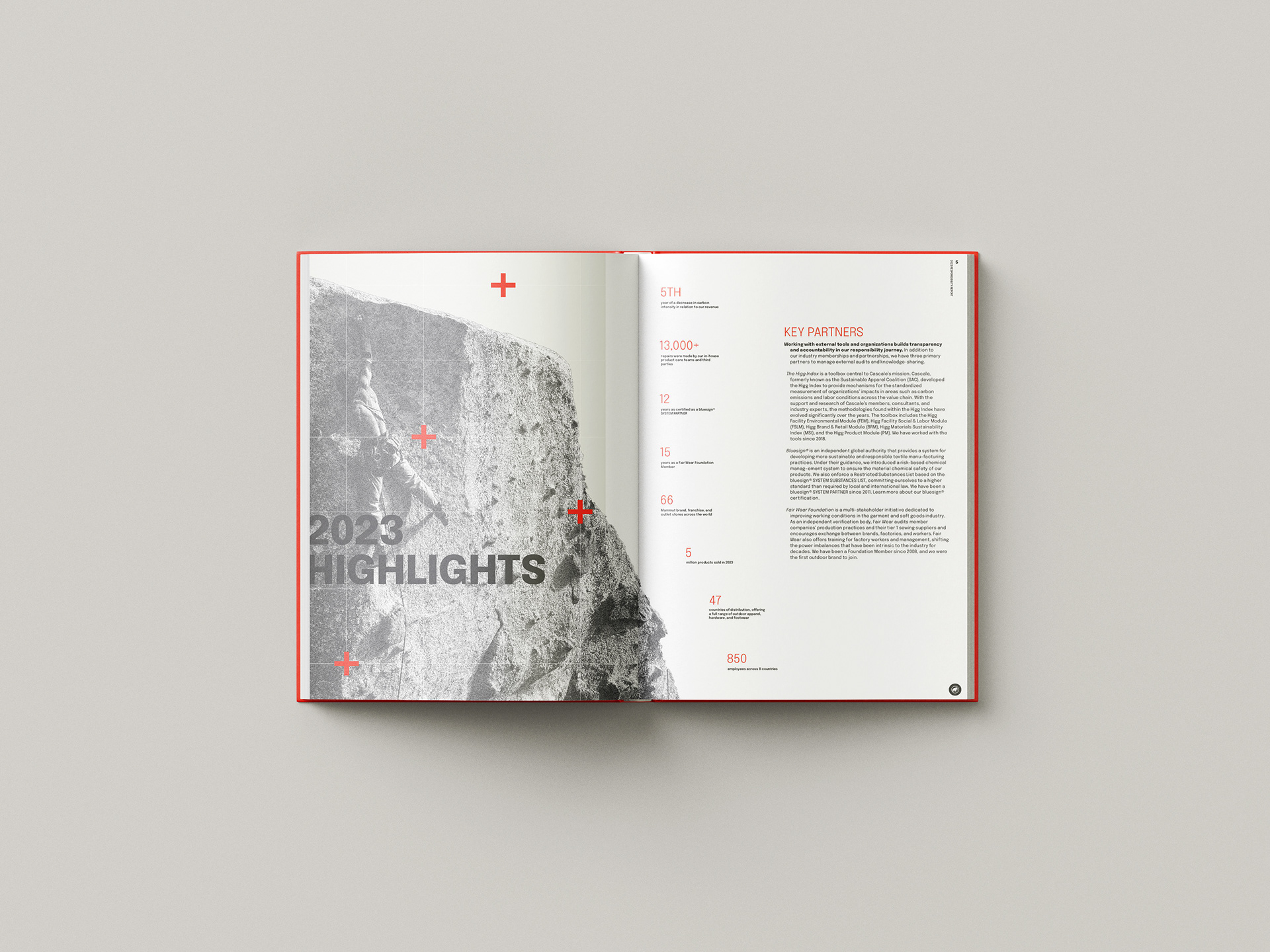 The annual report enabled a rough-and-tumble brand to shine through numerical data by bringing brand DNA into the layouts and data visualization.